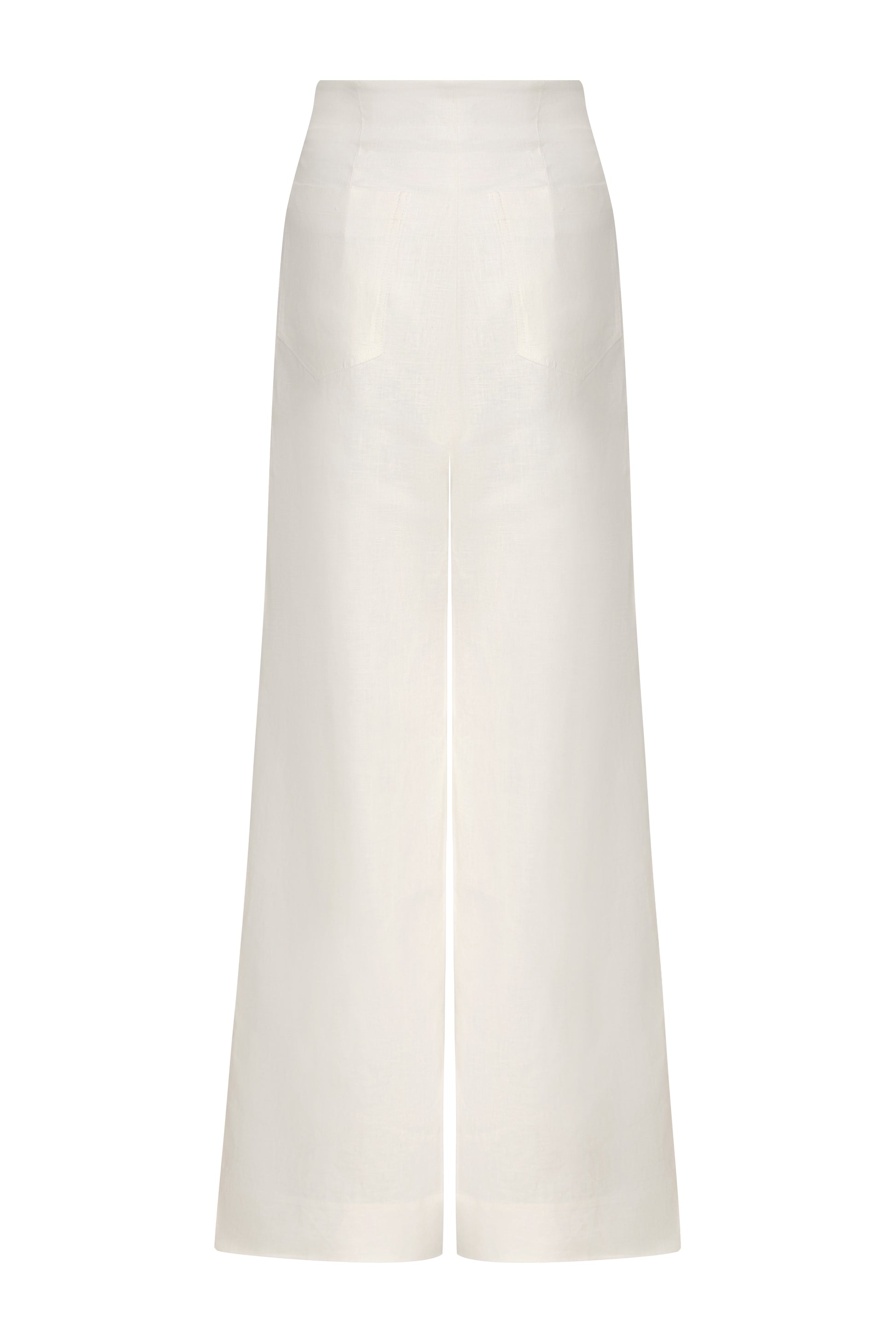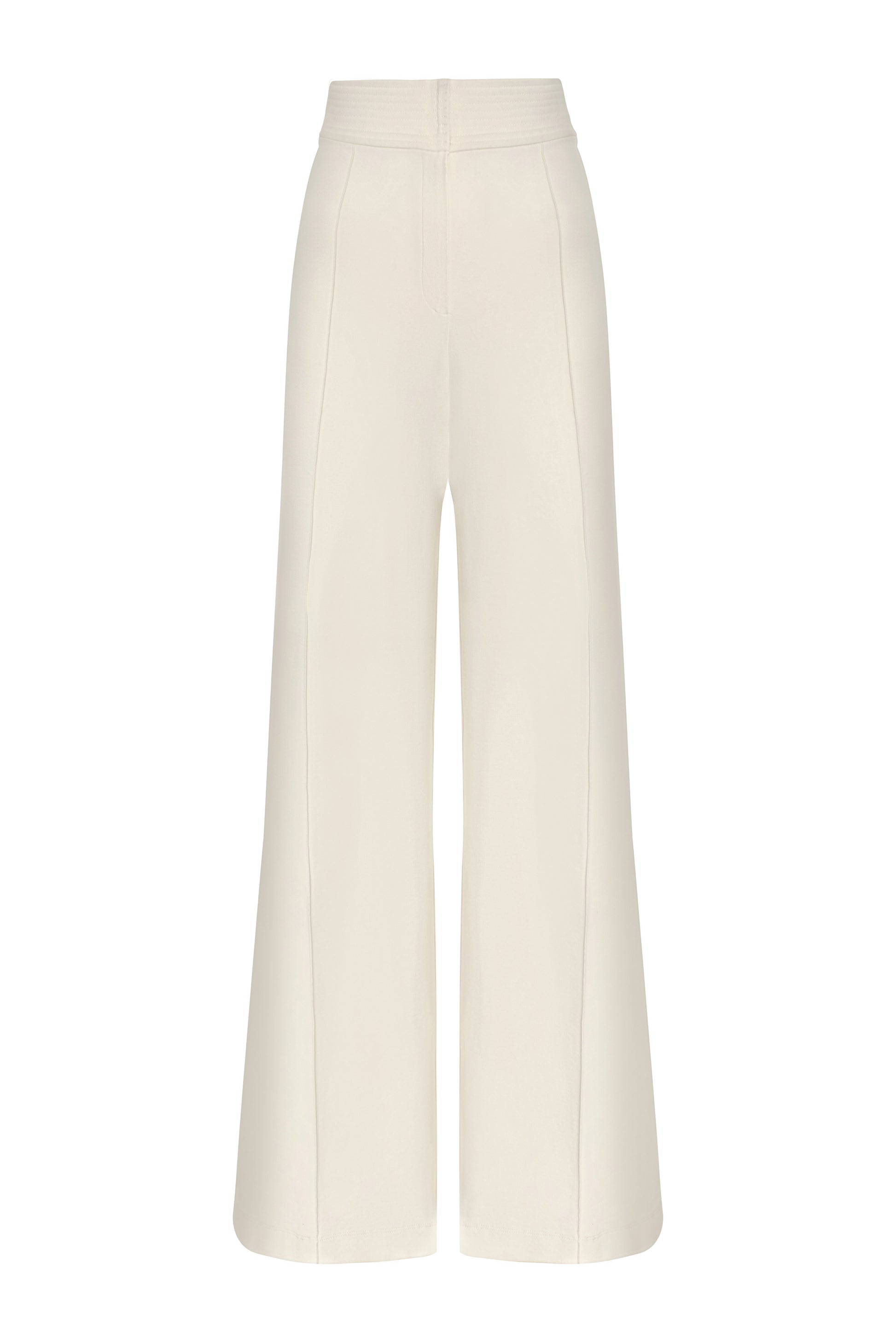 Pants made from a blend of rayon, nylon, and spandex. Their sleek Off-White silhouette hugs the body with softness and structure. An elegant piece, ready for any occasion.
