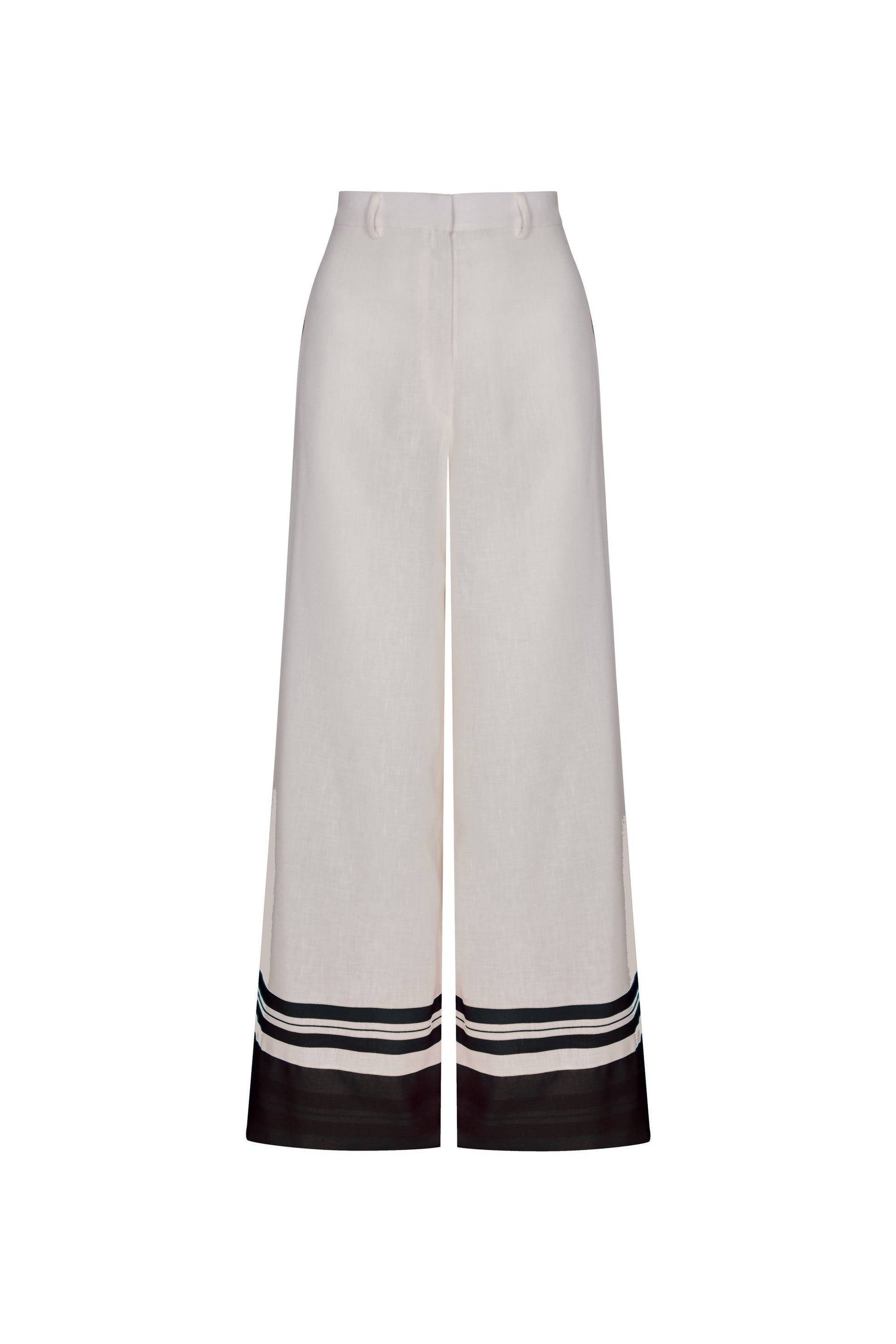 Mi Refugio: Classic trousers crafted from 100% linen, with black lines that streamline and add elegance. A timeless choice for refined looks.