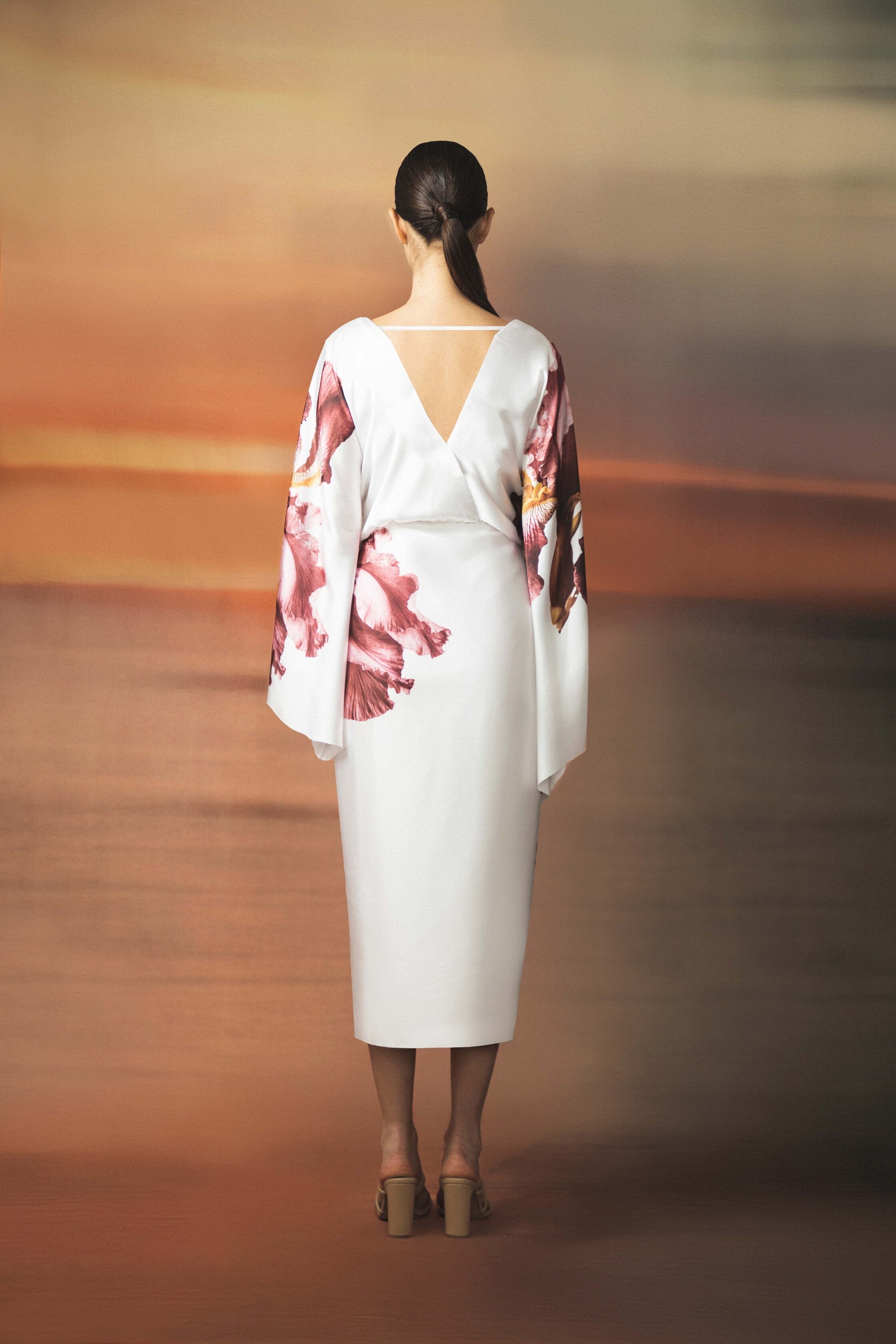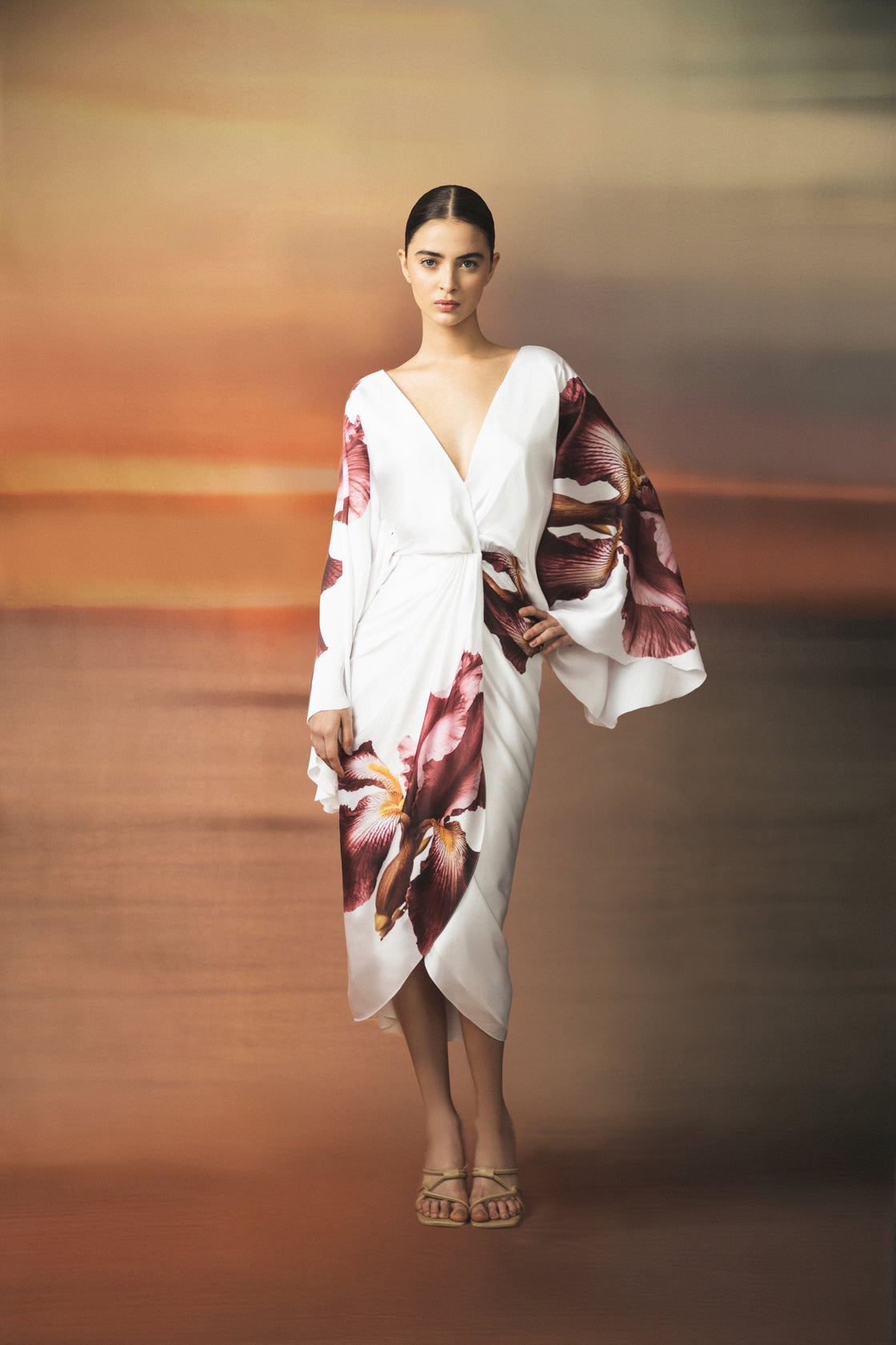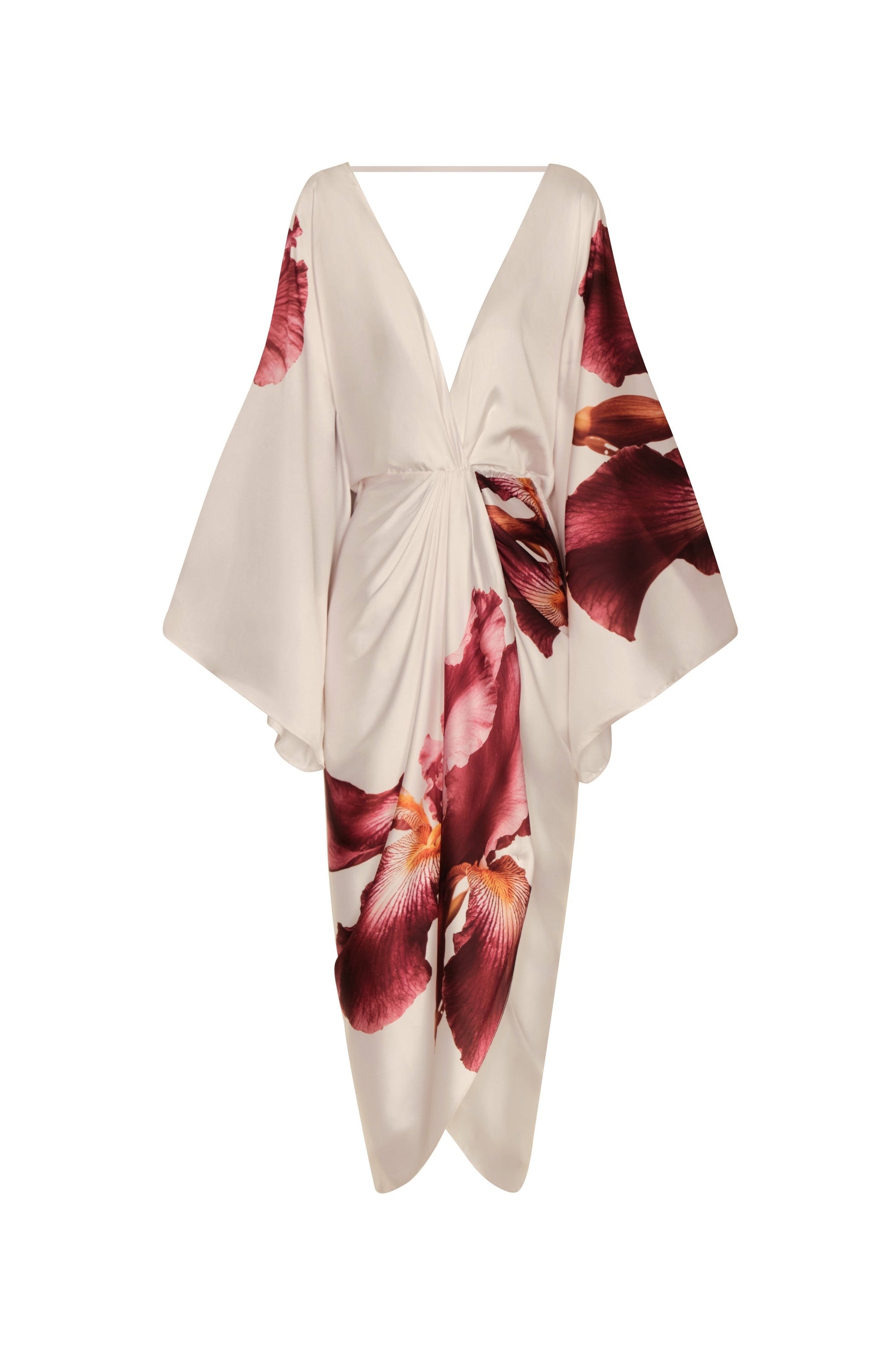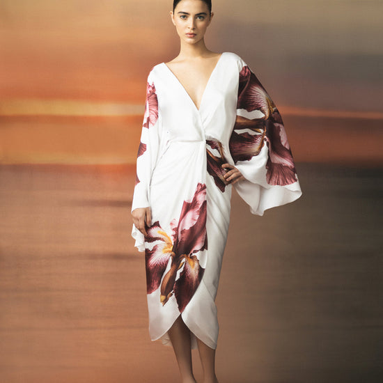 Hilo Ancestral is a loose-fitting caftan crafted from EcoVero viscose. Its floral print is inspired by artisanal craftsmanship and the subtle beauty of handmade items.