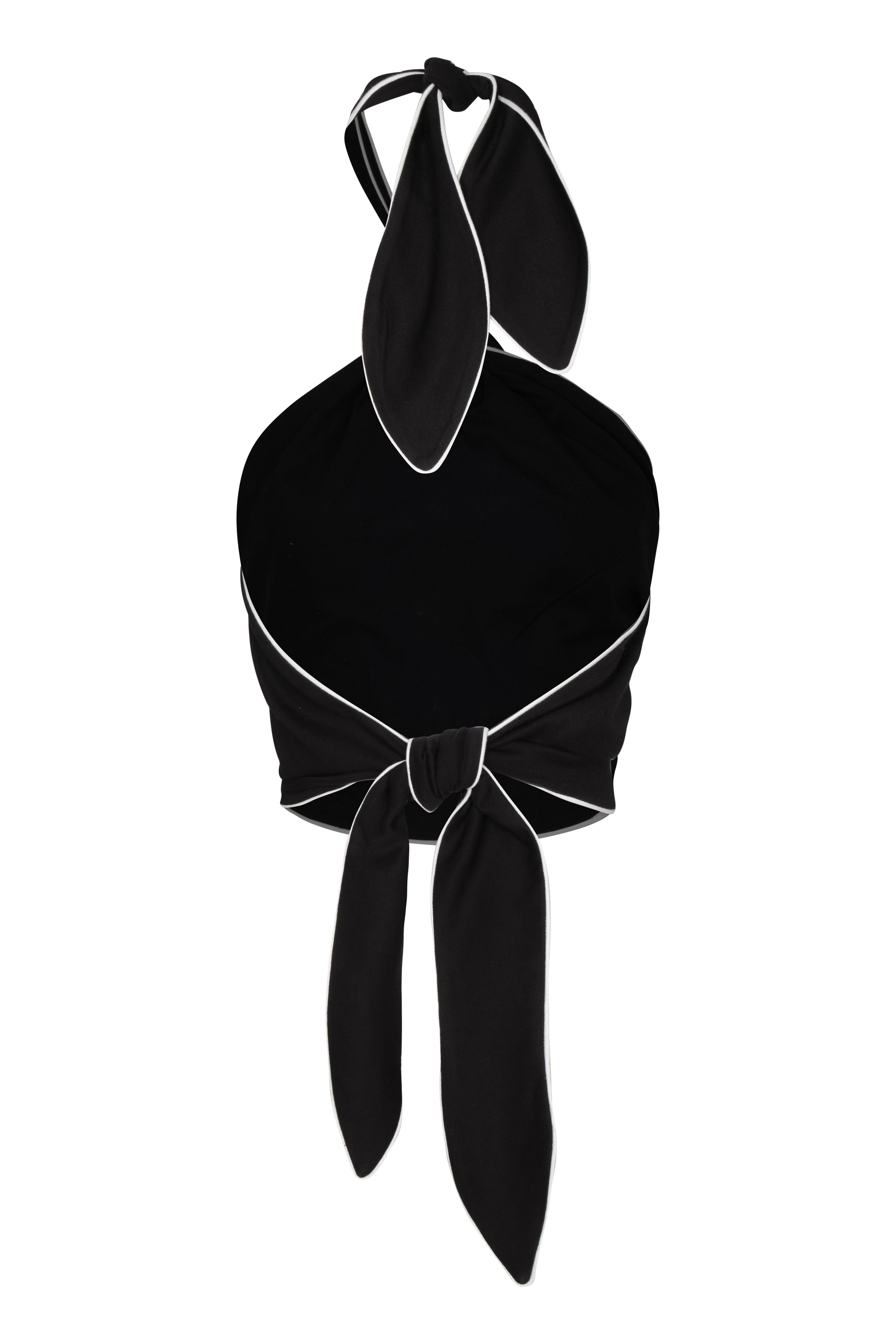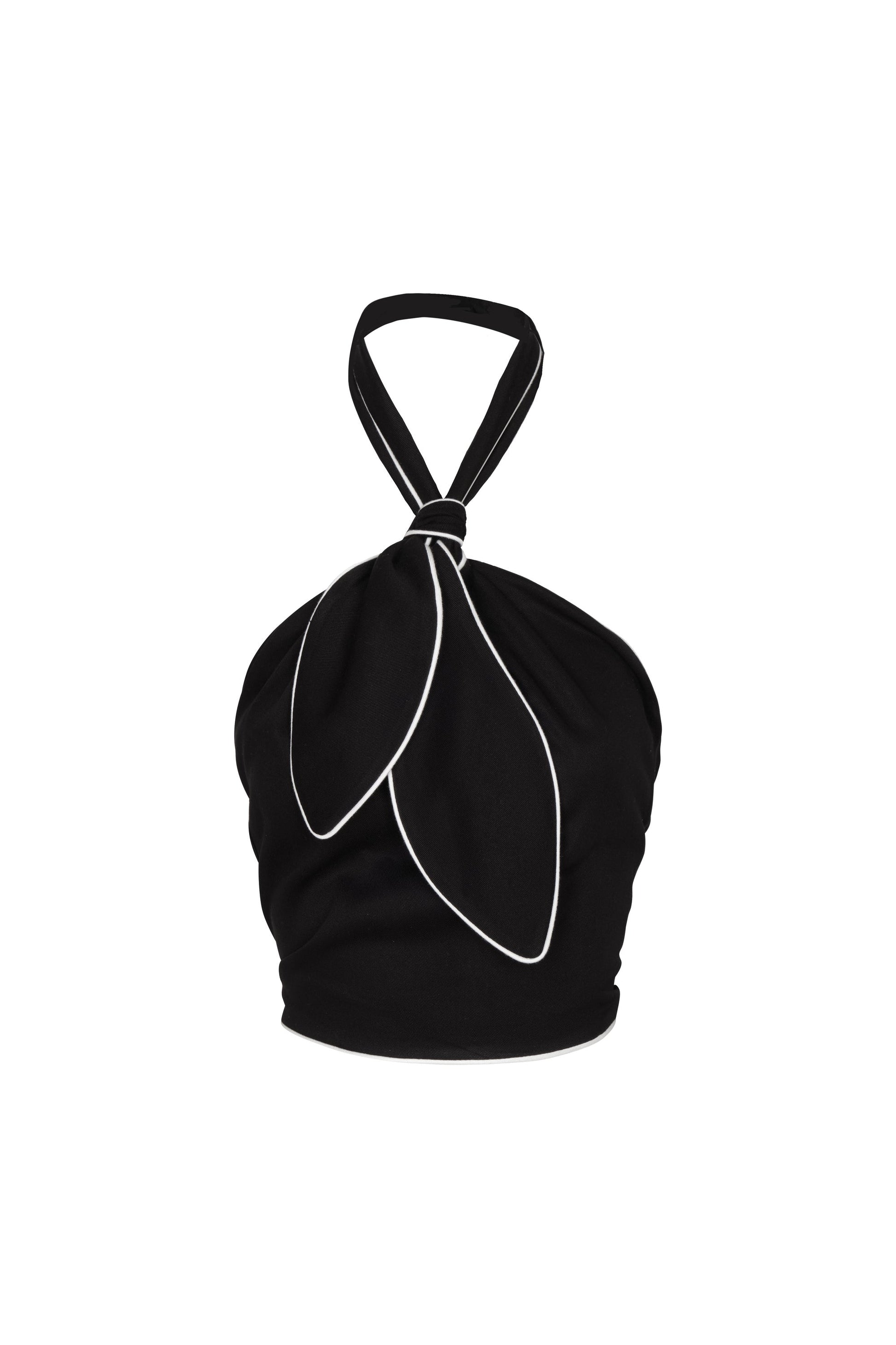 "Encanto Eterno" is a black top made of rayon. Its distinctive neckline adds elegance and elevates any look.