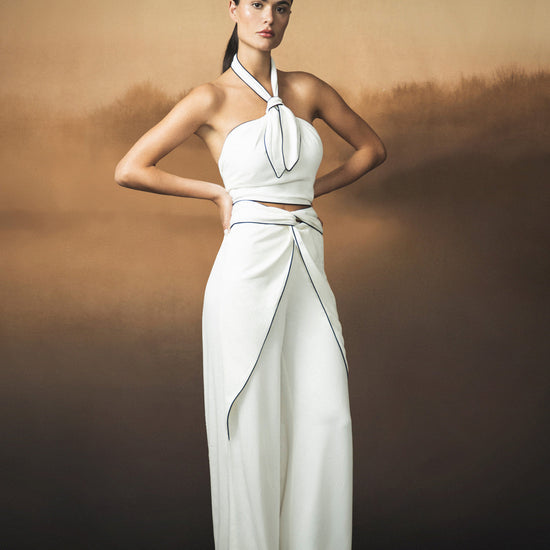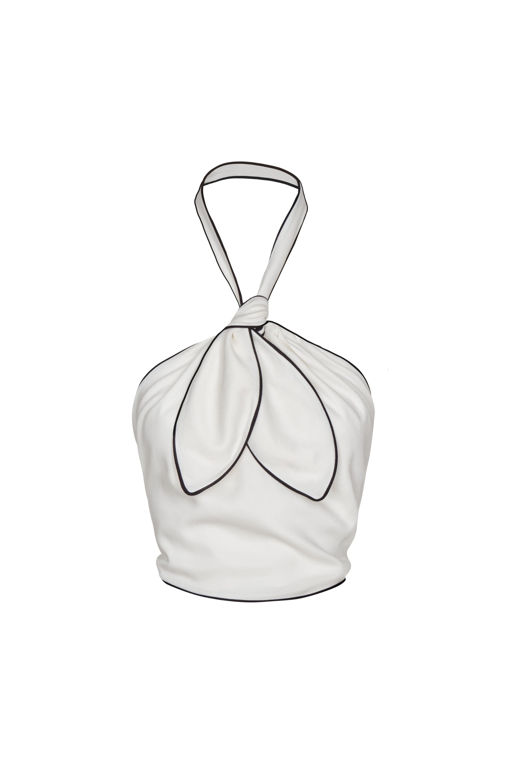 "Encanto Eterno" is a Off- White top made of rayon. Its distinctive neckline adds elegance and elevates any look.