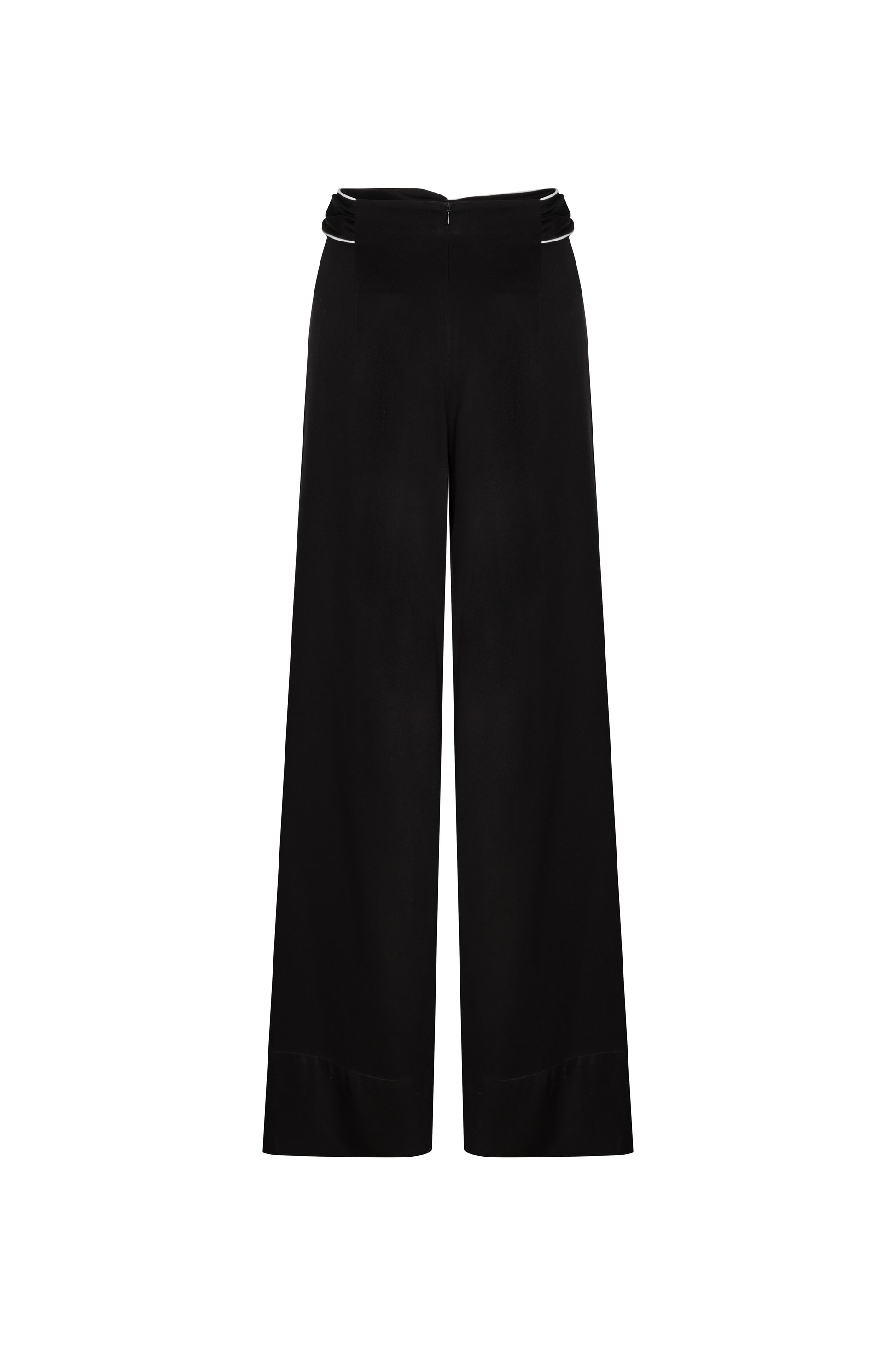 Pants made from 100% rayon. Their soft drape and mix front create a clean, delicate silhouette. Available in Black