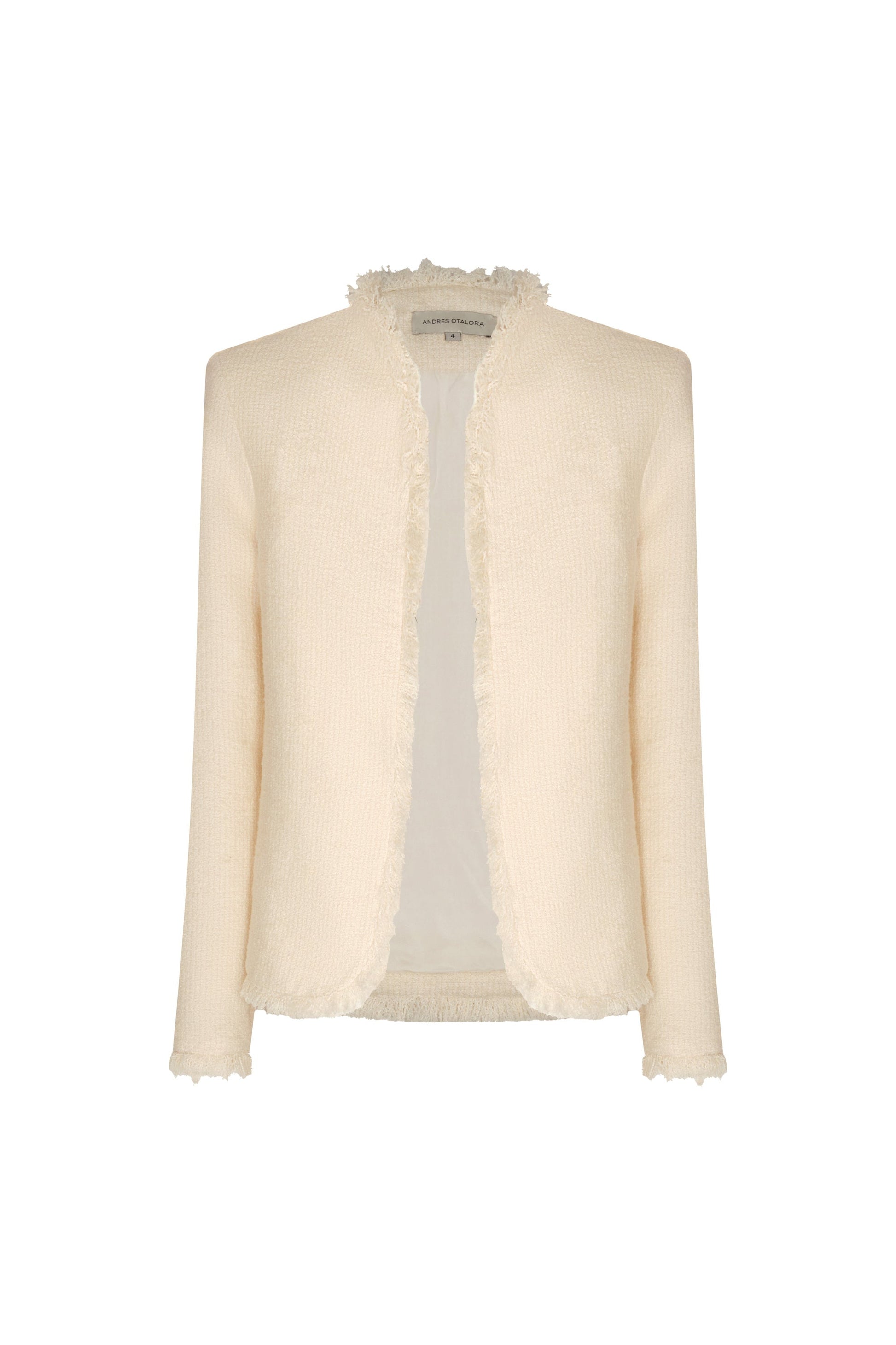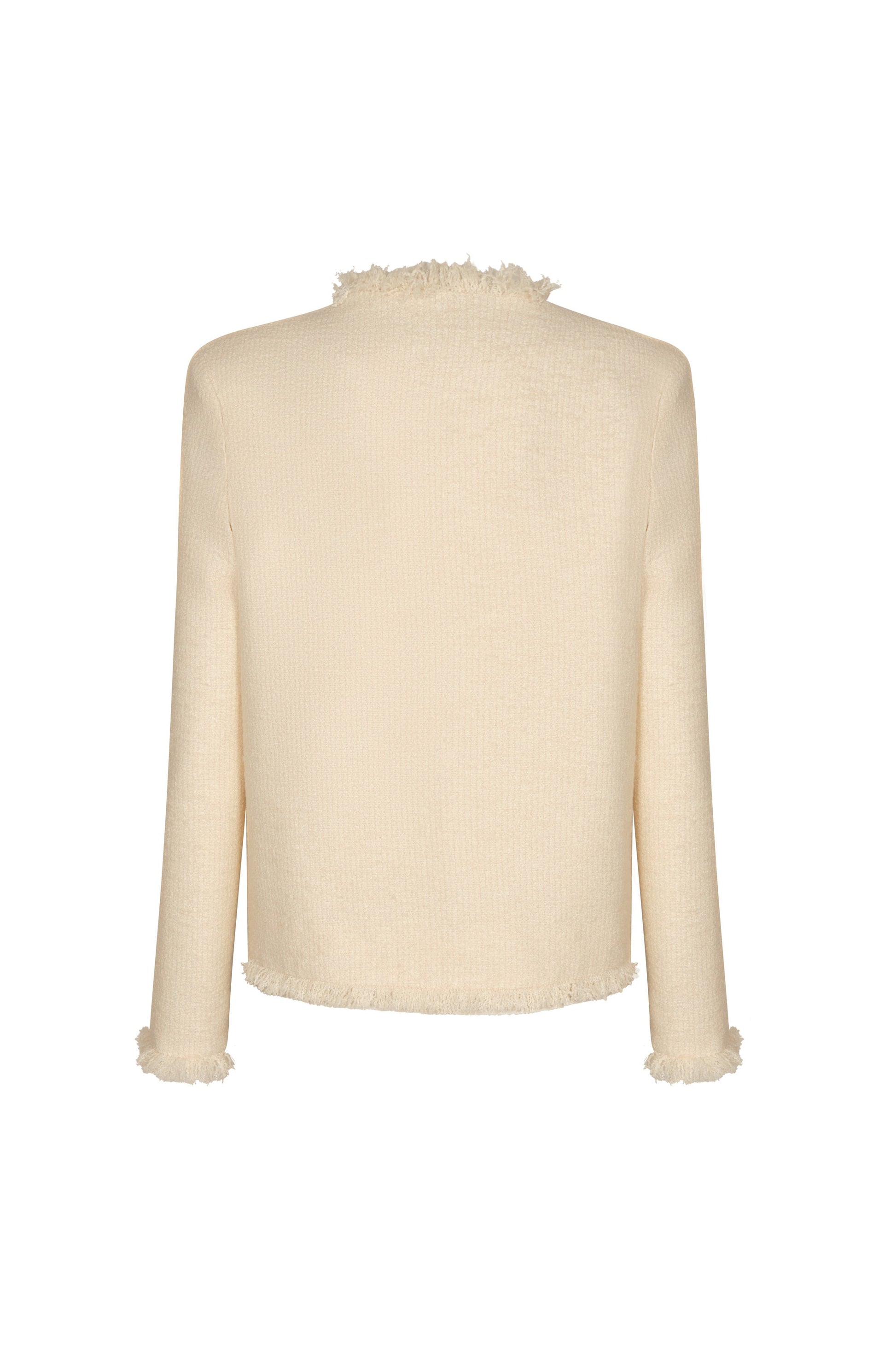 Off white jacket, crafted from cotton and acrylic tweed. It features soft edges and a straight silhouette. Ideal for complementing formal or casual looks.