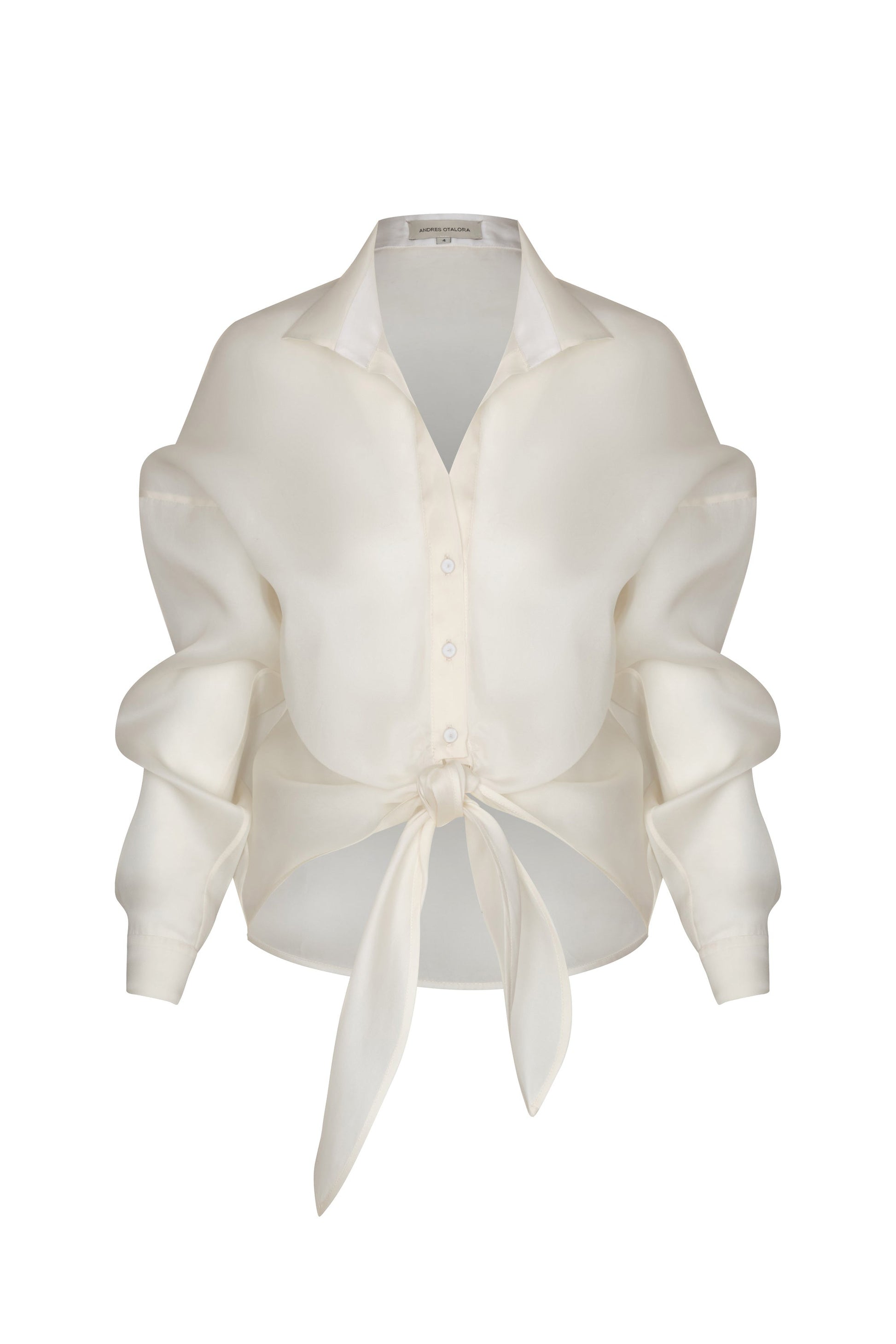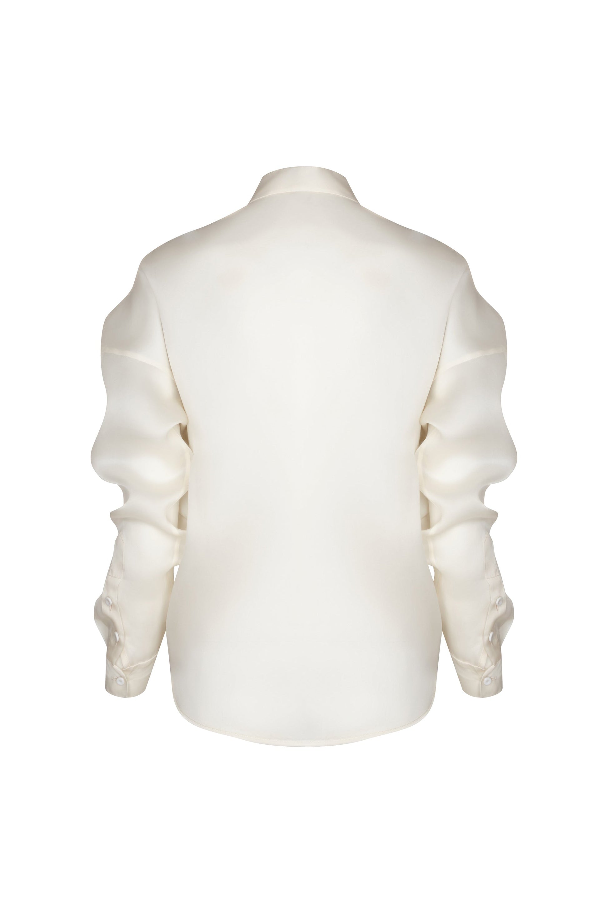 "Vinculo Infinito" is a white shirt made of 100% silk. Its sculptural silhouette is inspired by the harmony of natural forms, uniting strength and delicacy in every detail.