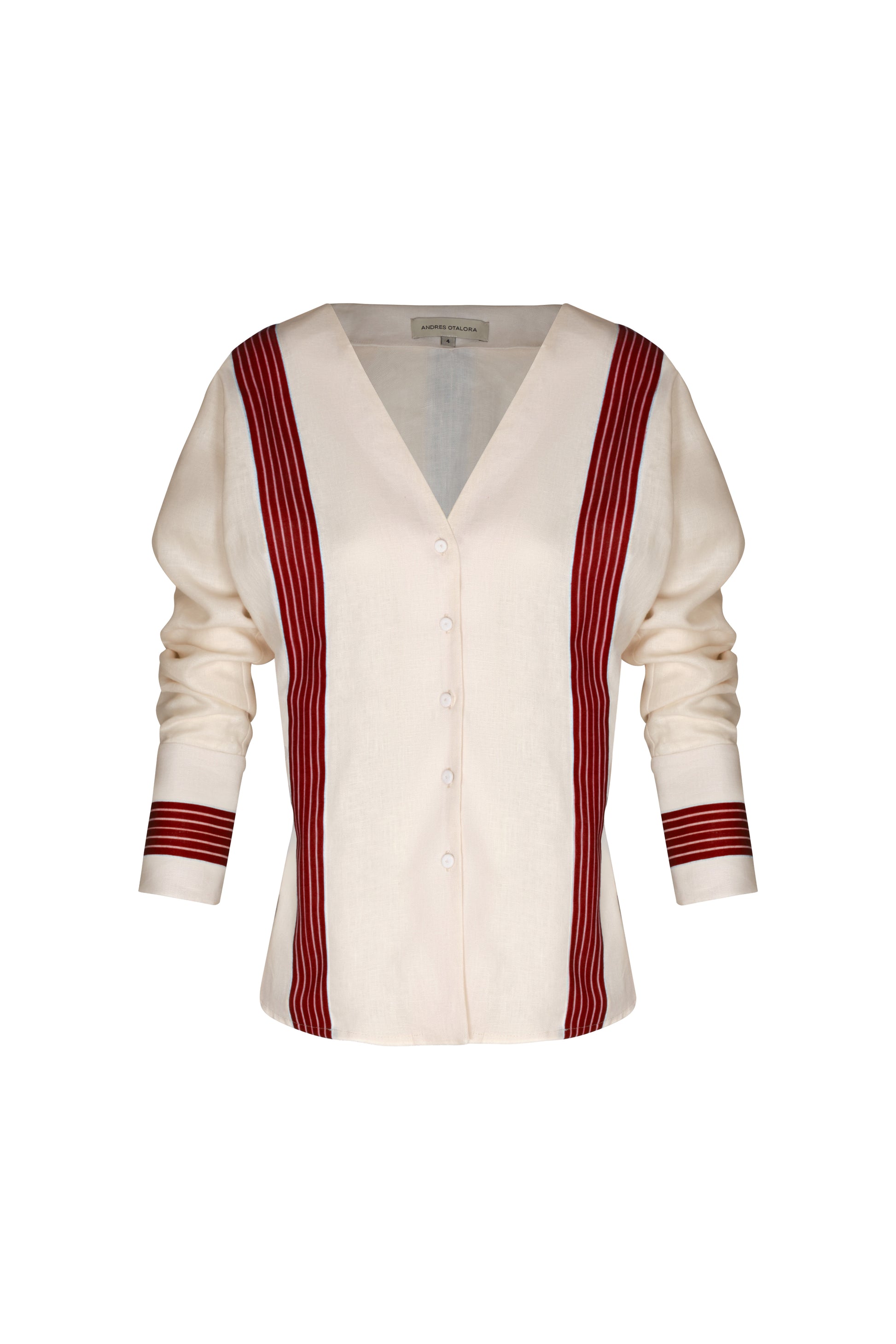 Linea Clara is a Wine Pinstripes shirt made of 100% Linen. Make it a classic piece with a delicate and refined air. Its light texture and timeless lines make it a perfect versatile garment.