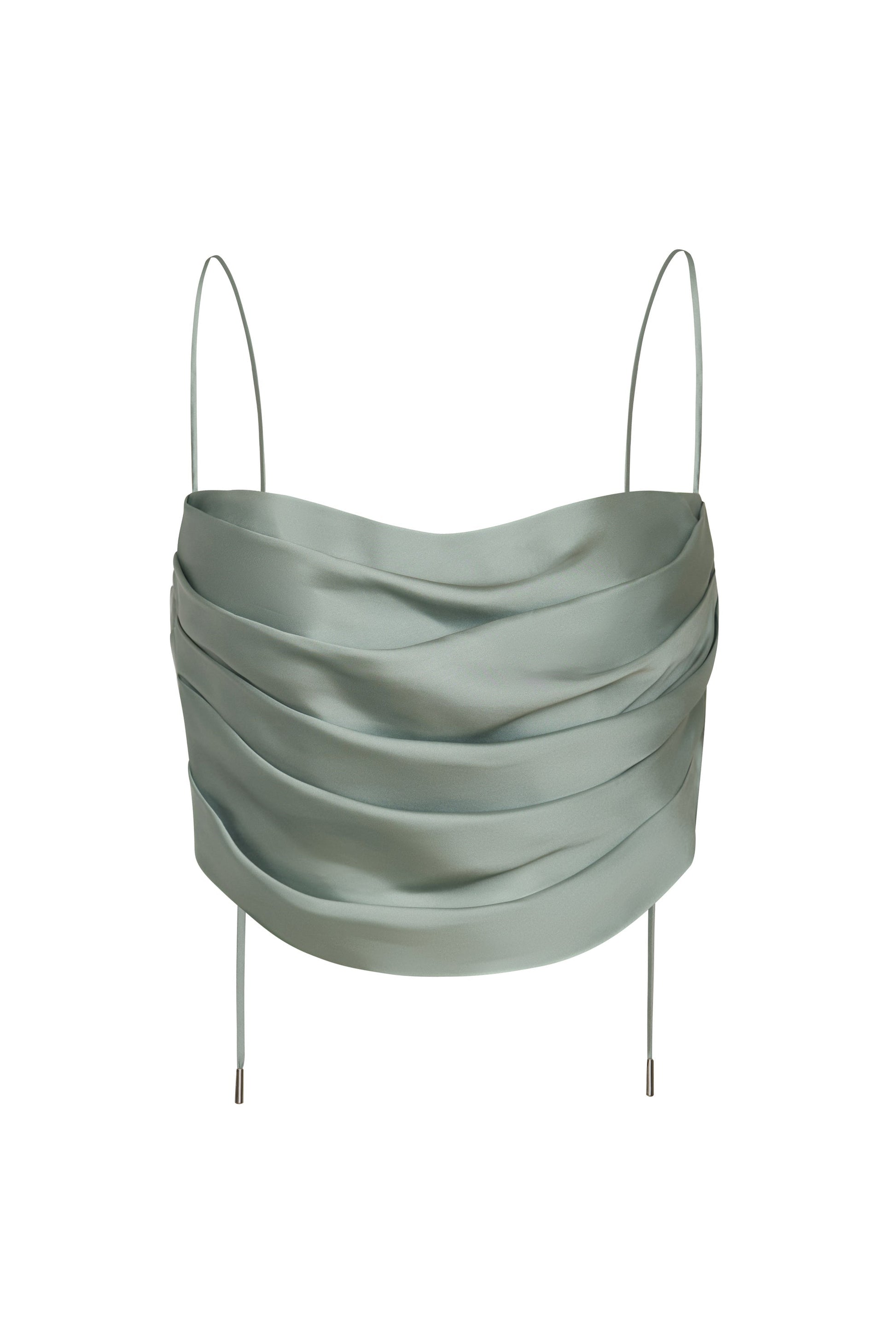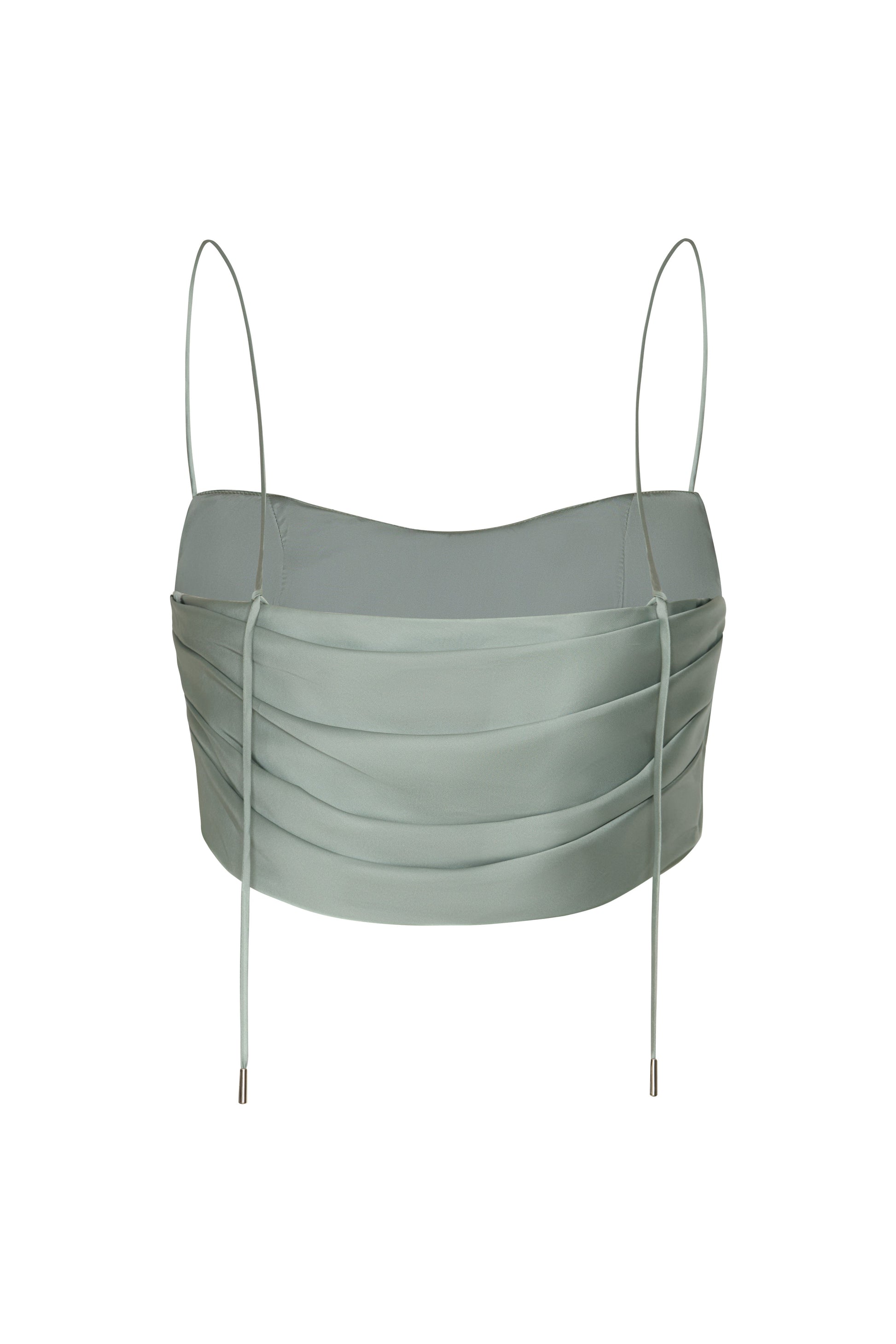 Sage green crop top, made from a viscose blend with a soft, fluid feel. A garment that conveys freshness, elegance, and natural charm.