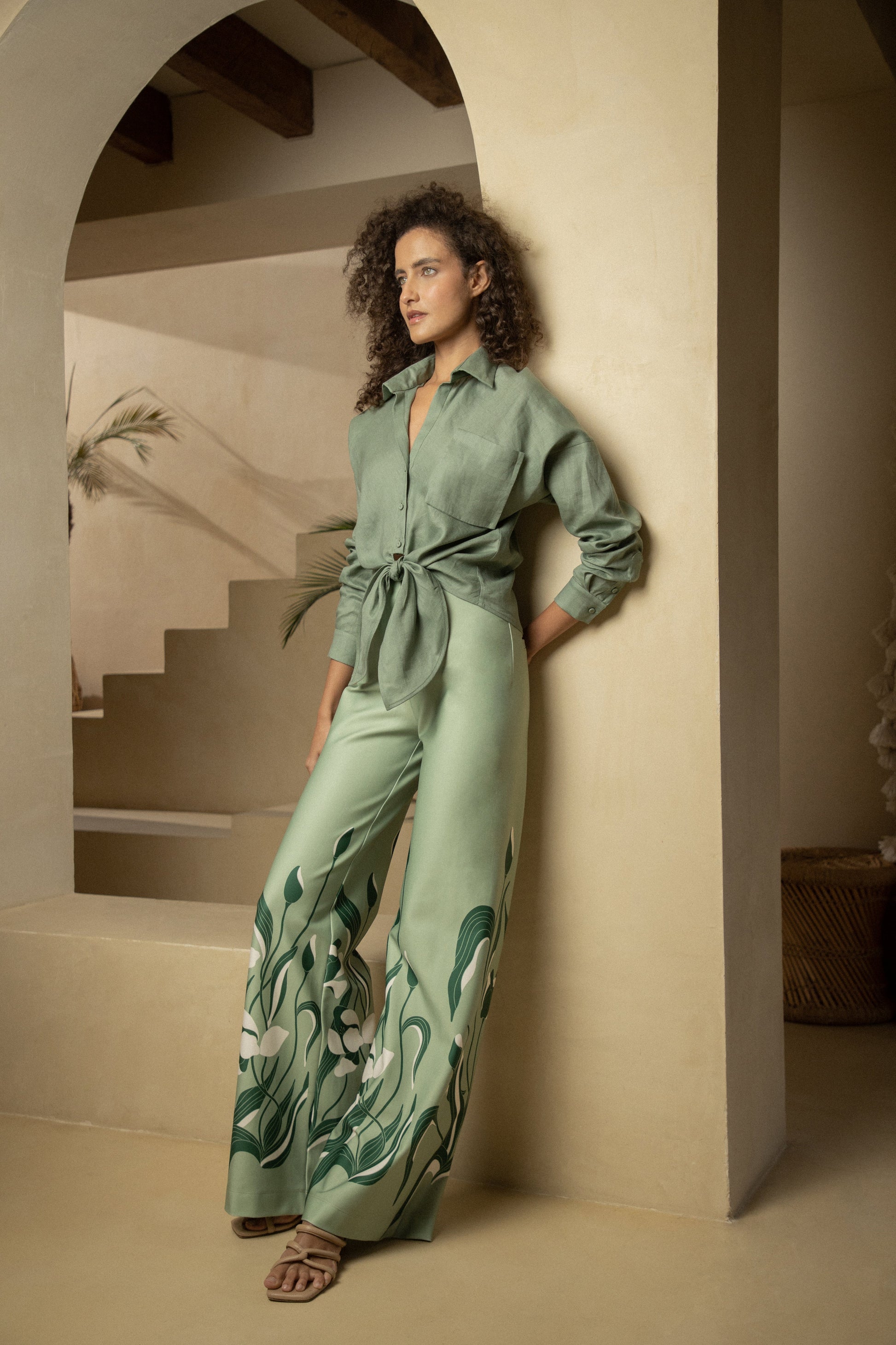 "Sage Green" is a blouse in a sage green hue that evokes freshness and serenity. A simple and elegant design, inspired by the calm of nature.