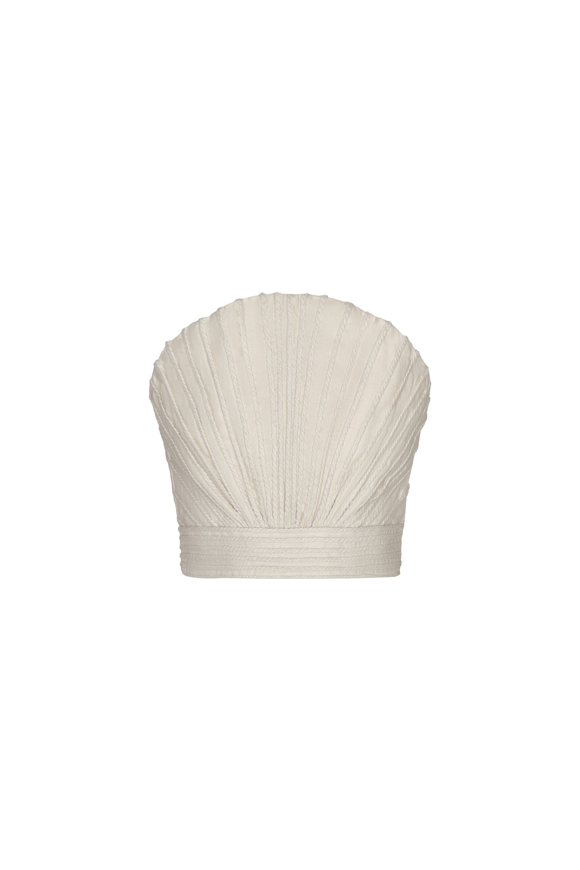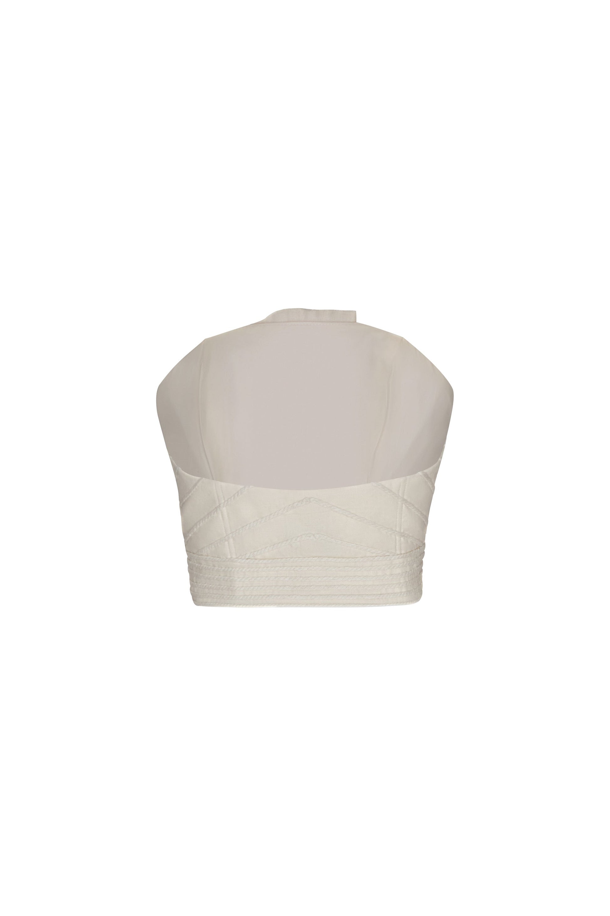 Top bordado en tono marfil, confeccionado en lino. Inspirado en la suave brisa marina, este diseño combina ligereza y elegancia natural.
