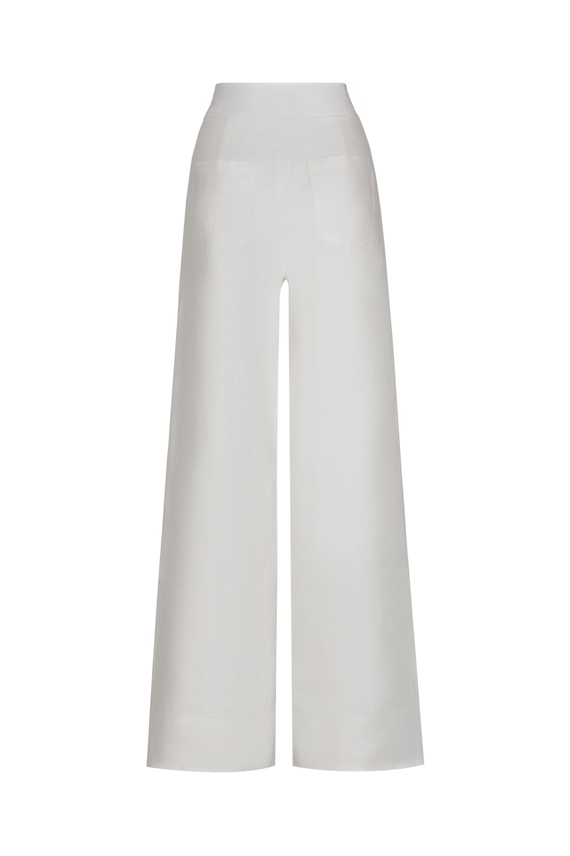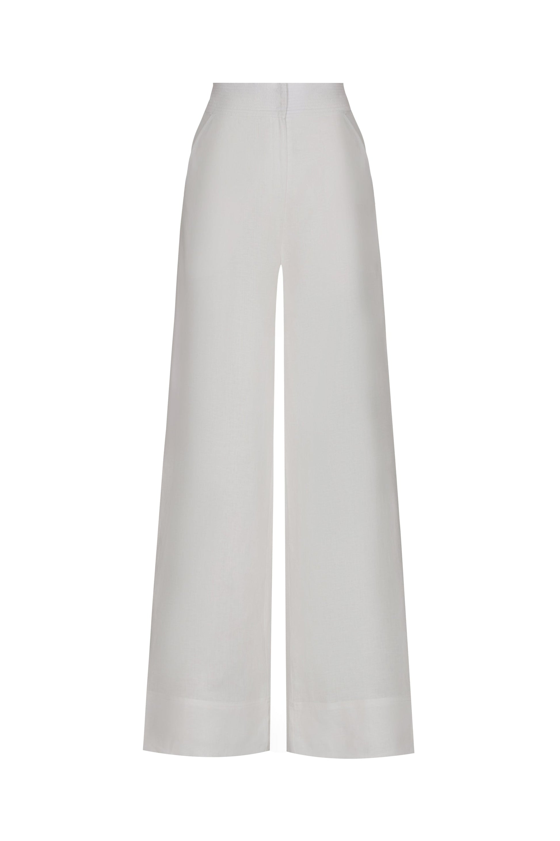 “Santos” is a pant crafted in off-white linen, featuring a relaxed yet refined cut that blends comfort with style. Its versatile silhouette makes it perfect for both formal and casual looks.