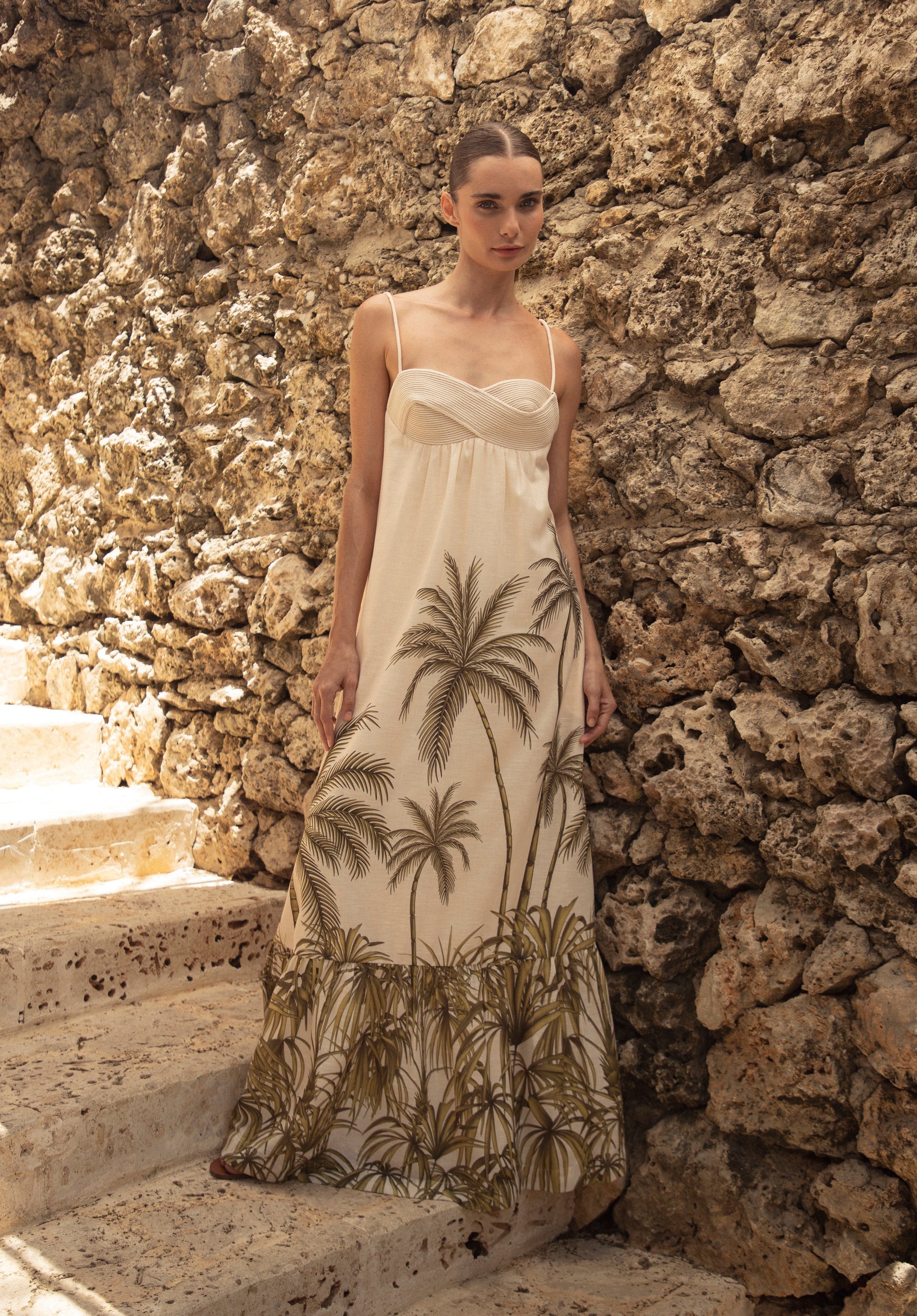 The collection is inspired by the beauty of the Caribbean and the calm of the sea. Its flowing, elegant silhouettes reflect the movement of the waves, with handcrafted details and cuts that bring a timeless touch to each design. Made with high-quality fabrics like linen, silk, cotton, and viscose, the pieces are created for a woman who is free, modern, and down to earth. A celebration of nature with freshness and lasting elegance.