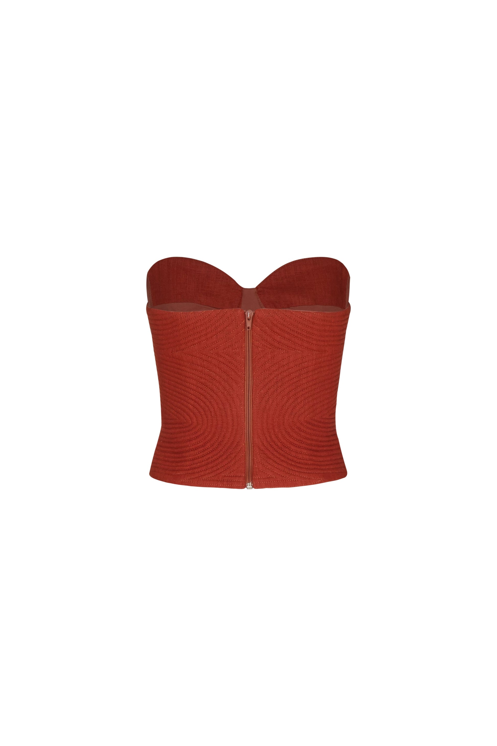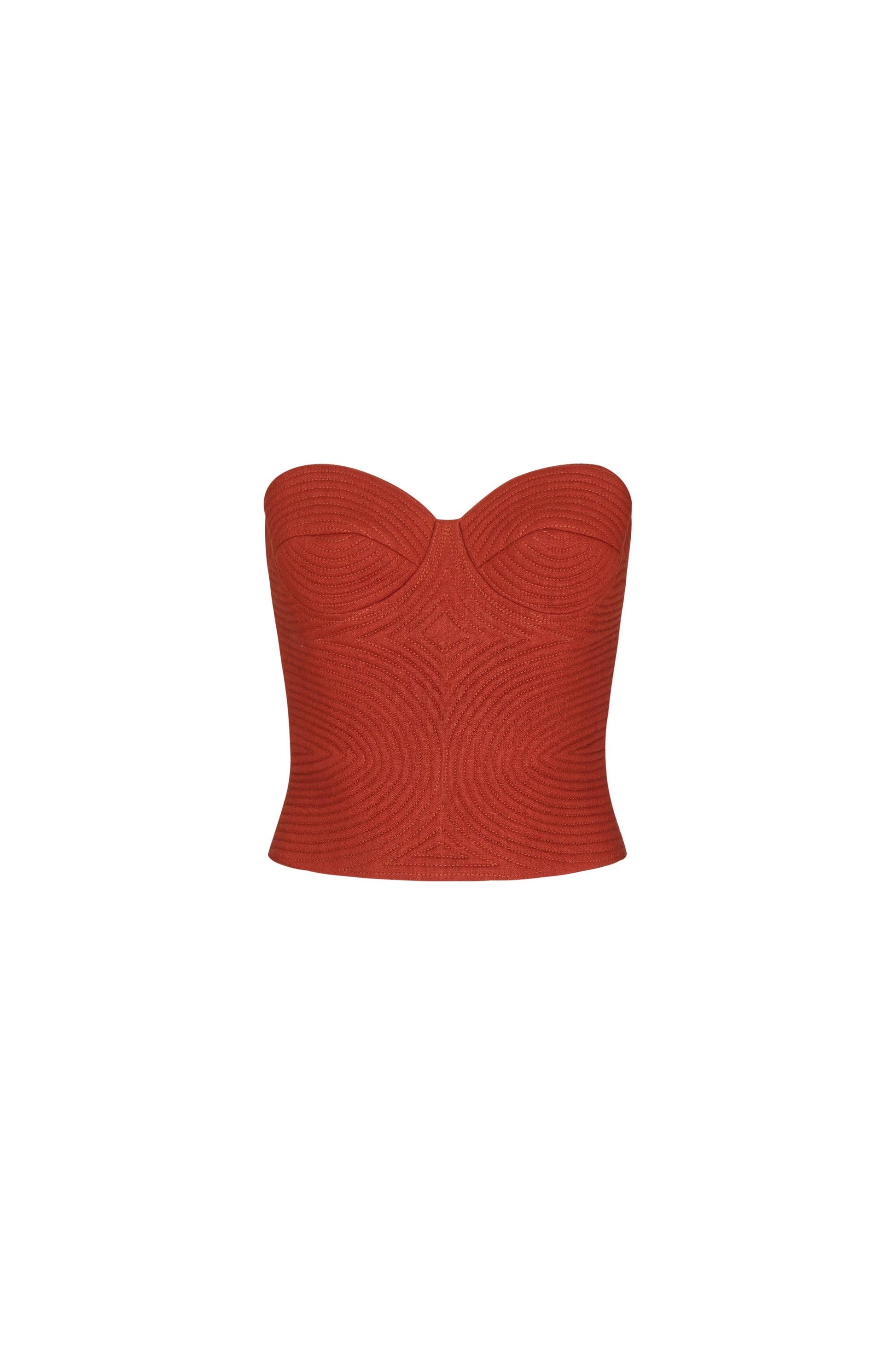 Embroidered top in terracotta, crafted in linen. Inspired by the warm tones of the earth and the Caribbean sea, this simple yet elegant design stands out naturally on any occasion.