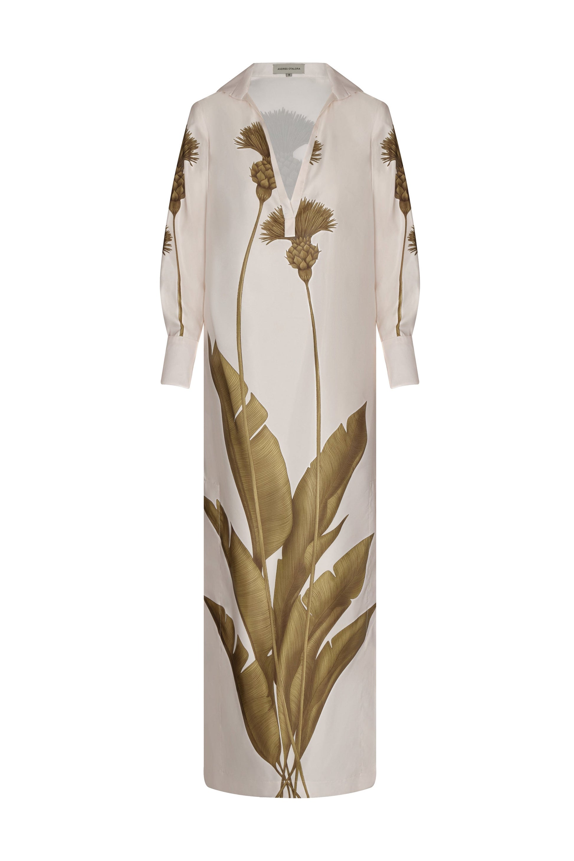 Túnica confeccionada en popelina 100% algodón, con un delicado estampado en tonos lima sobre una base marfil. Una pieza ligera y sofisticada, ideal para aportar frescura y estilo.