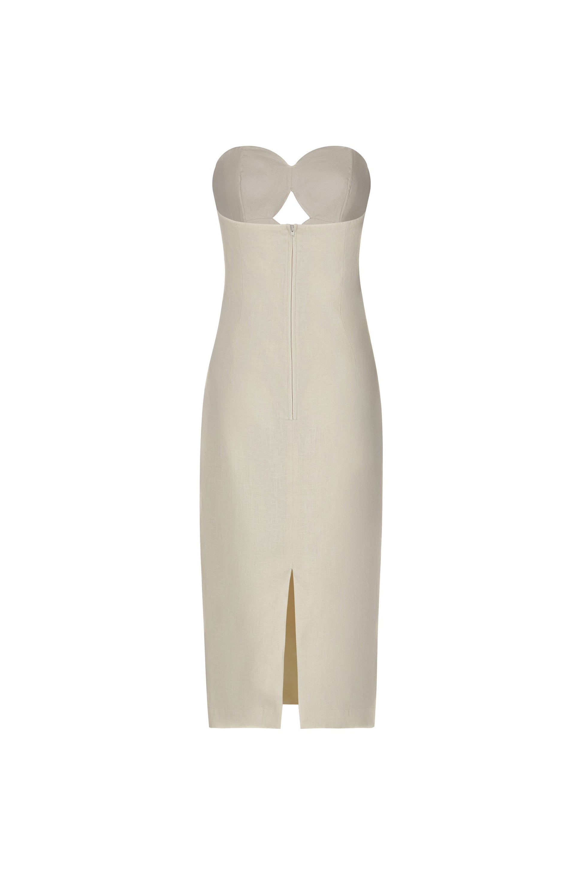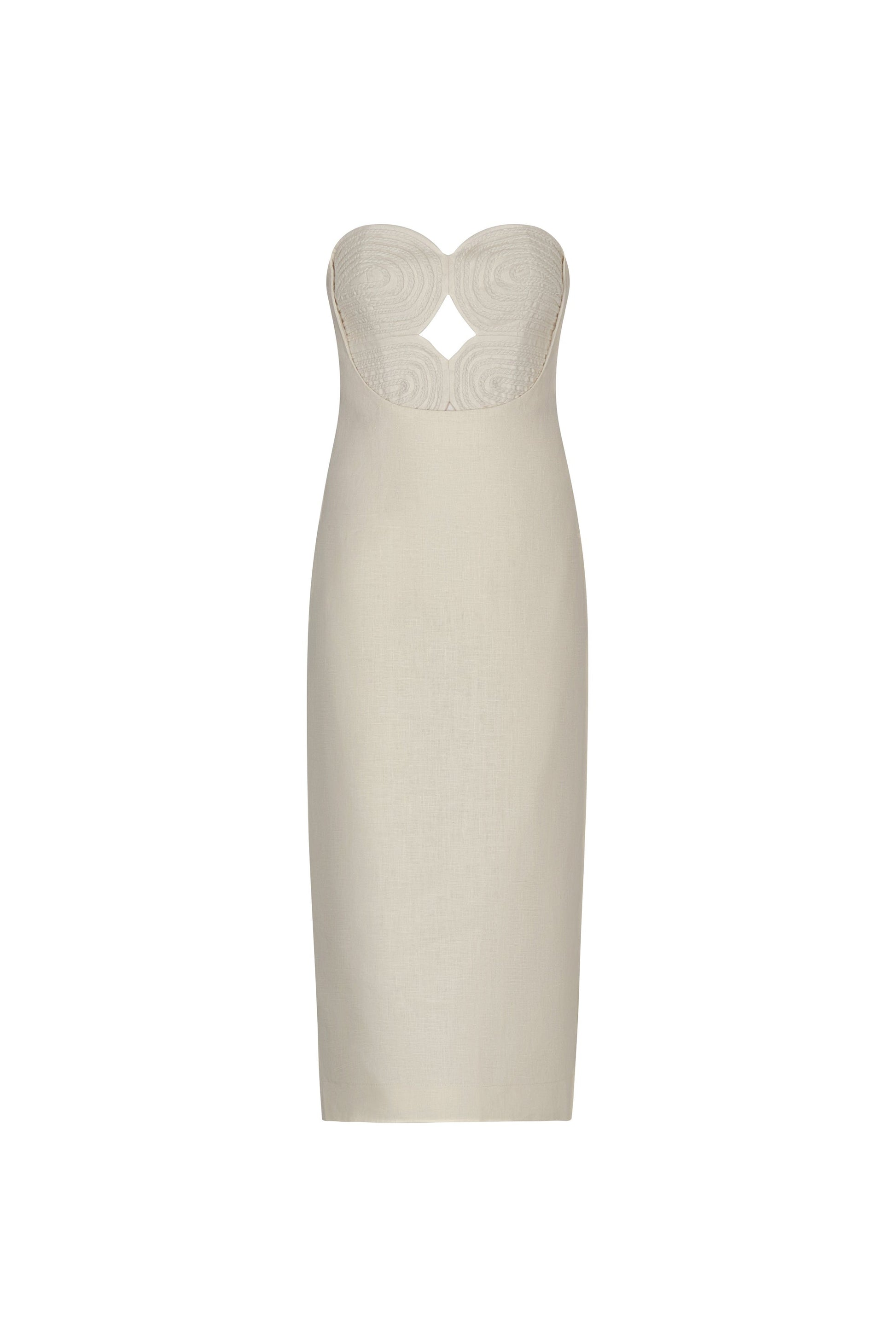 Embroidered midi dress in 100% linen, a simple yet elegant design, perfect for any occasion. Its Ivory hue brings freshness and brightness, ideal for a natural, effortless look.