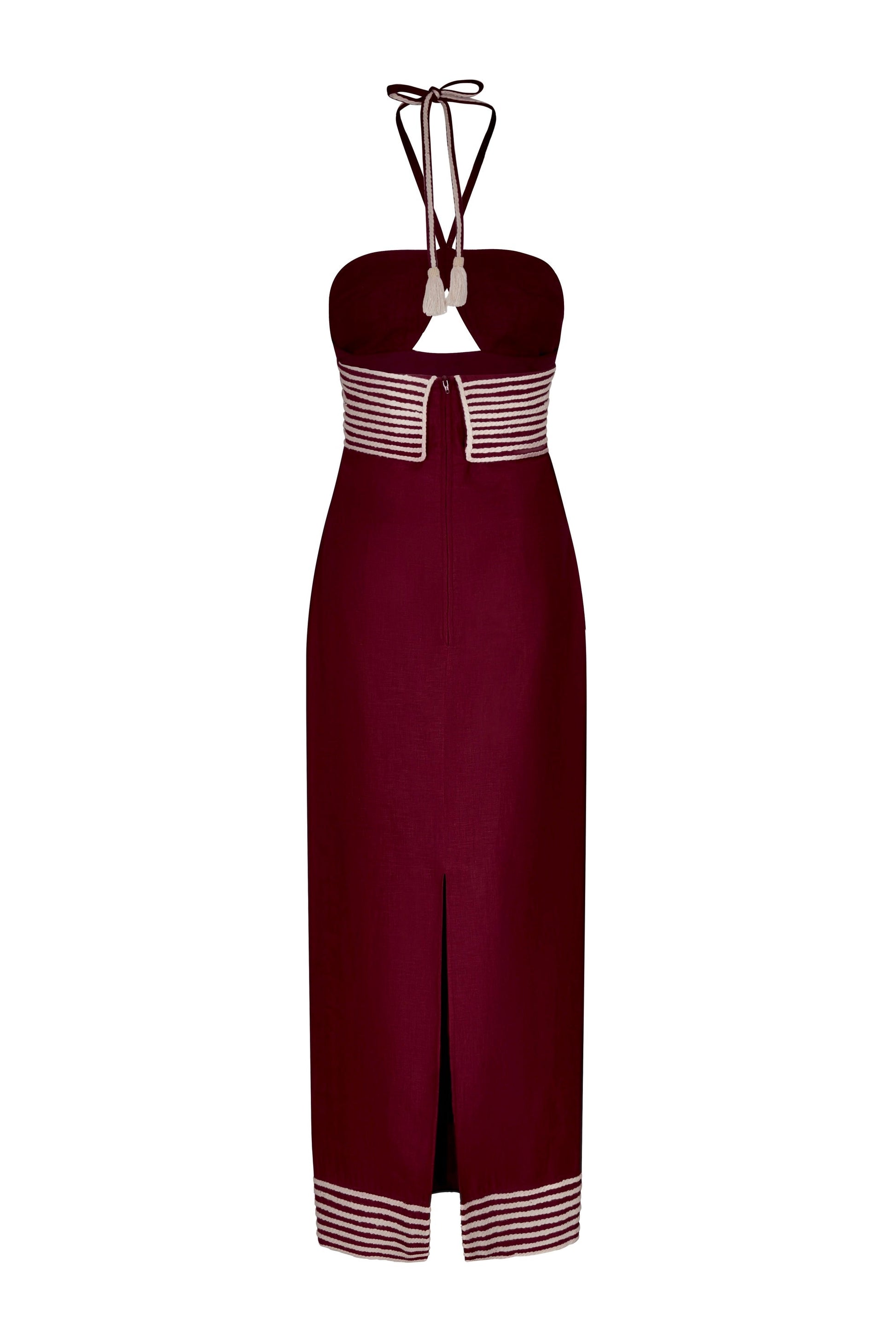 The Calma dress stands out with its elegant and minimalist silhouette. Crafted from 100% linen, it combines a fitted design with delicate embroidered straps that add a handcrafted touch.
