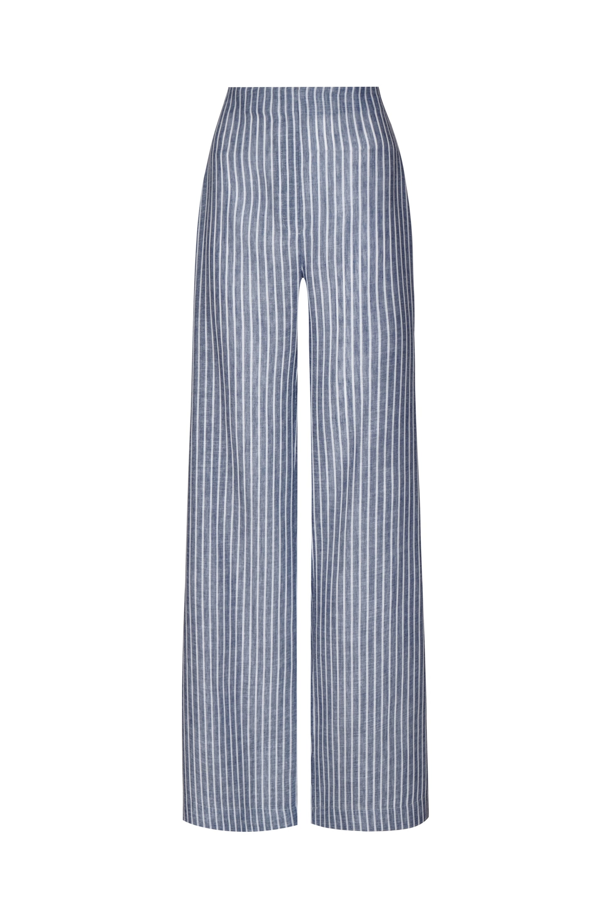 “Amor Profundo” es un pantalón a rayas en blanco y azul, inspirado en la serenidad y frescura del mar. Su corte relajado y elegante encarna el espíritu effortless de la colección AL MAR.