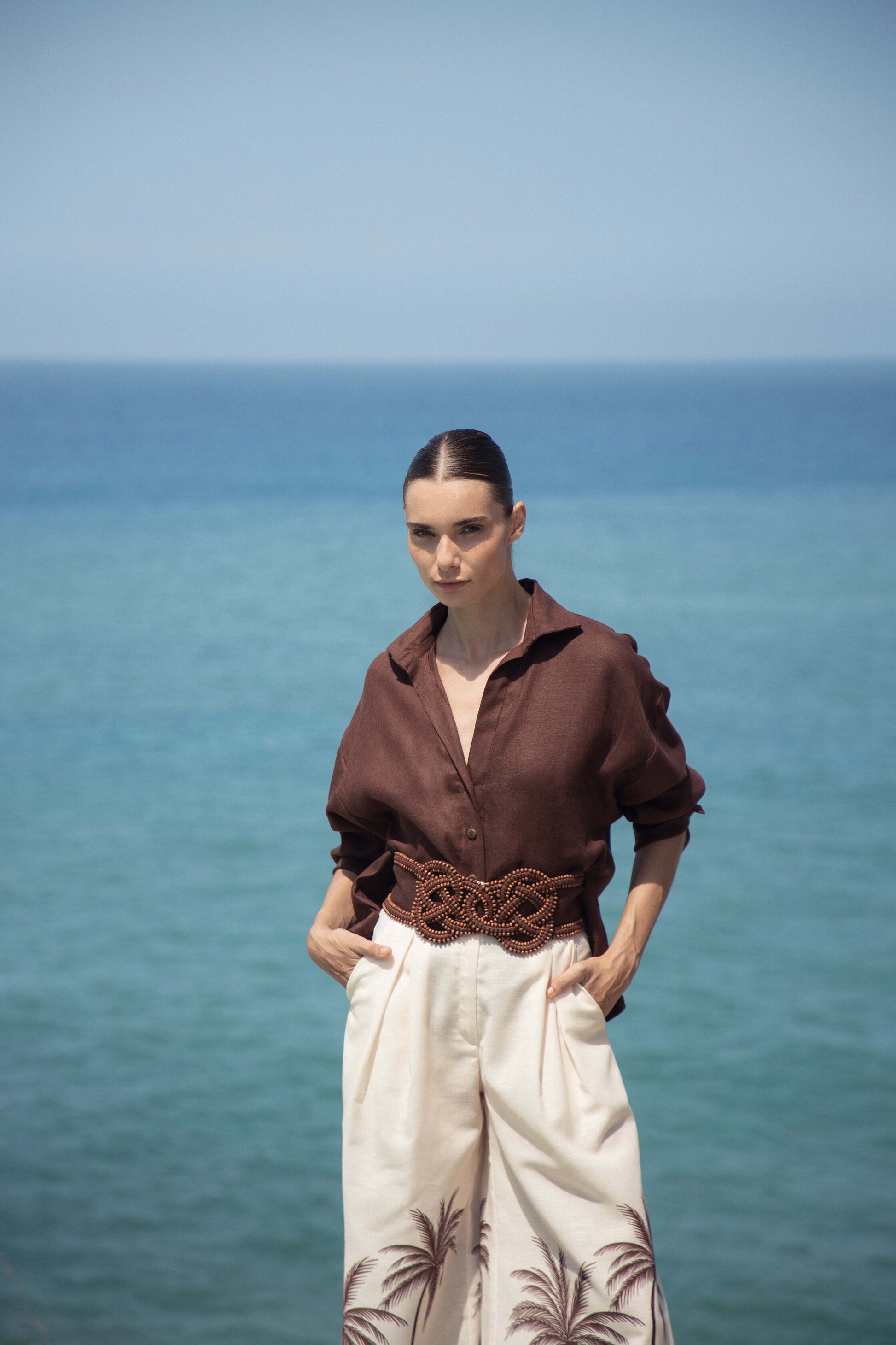 “Si Sabes” es una camisa de lino color cafe. Una pieza fresca y delicada, con detalles sutiles que realzan su diseño atemporal.